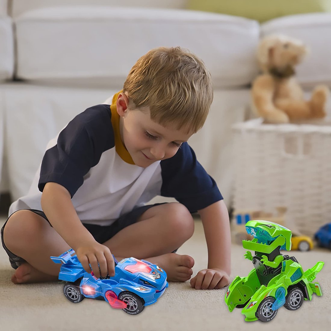 Bunt, mit LED-Lichtern und brüllendem Dinosauriersound verwandelt sich dieses Auto automatisch in einen Dinosaurier.