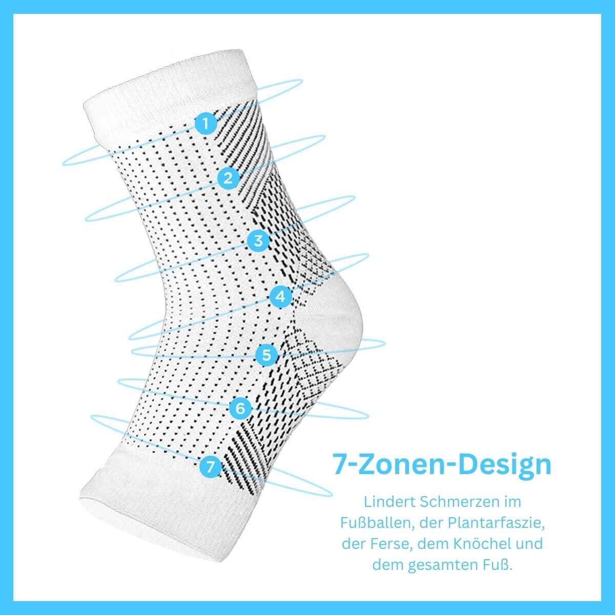 - 7 Kompressionszonen: Helfen Sie dabei, Ihre Füße zu stabilisieren, um Verletzungen vorzubeugen und Schmerzen in drei separaten Bereichen zu lindern.